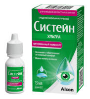 Бренд Систейн - линия офтальмологических препаратов искусственной слезы. Систейн Ультра 15мл применяется для облегчения таких симптомов «сухого глаза» как ощущение сухости, жжения и рези в глазу, чувство инородного тела, плохая переносимость кондиционированного воздуха, ветра, слезотечение.